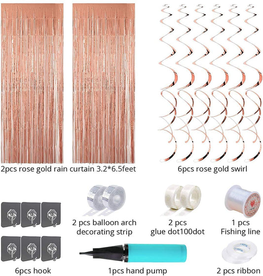 Tiokkss 144 Pcs Birthday Party Decorations/Balloon Arch kit with Rose Gold Balloons /Birthday Banner/6.6 Ft Metallic Foil Curtains/Hanging Swirl And Balloon Garland Kit Accessories for Party Decorations