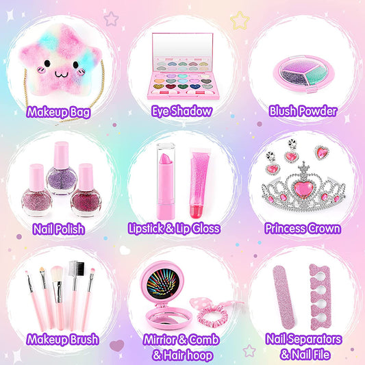 Tiokkss 21 Pcs Kids Makeup Kit for Girls, Princess Dress up Makeup Set with Cute Cosmetic Makeup Bag, Pretend Play Makeup Beauty Toys for Little Girls Birthday Gifts